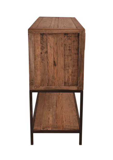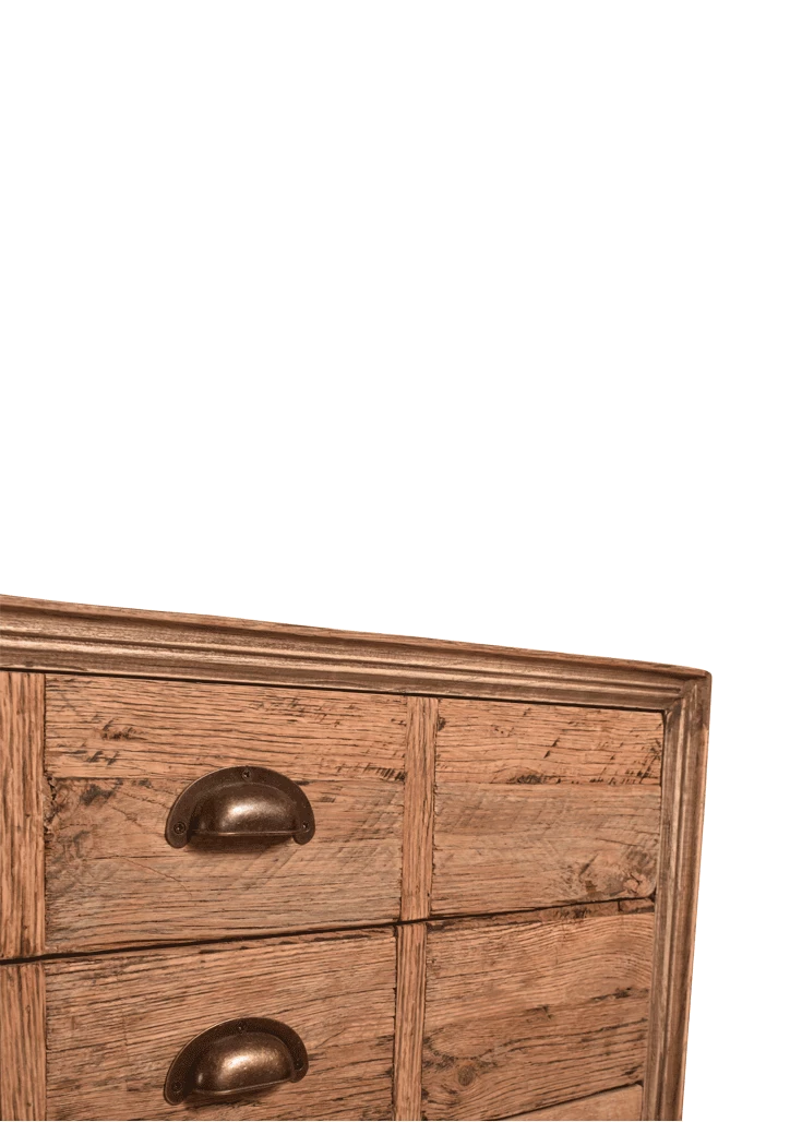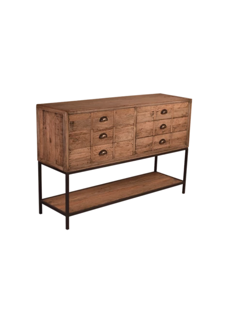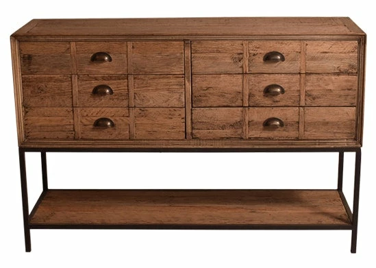 This sideboard is great for storage with 6 large drawers and a long shelf for anything you would like to display. Made from reclaimed Oak. Please note: Wood is less “red” than in photos.