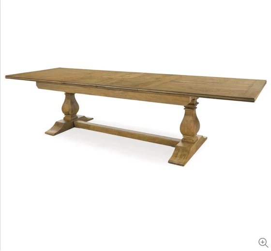The double extension table design gives you the flexibility of using it in three different configurations. The table closed is 2.1m long, it then extends to 2.6m and then again to 3.1m.