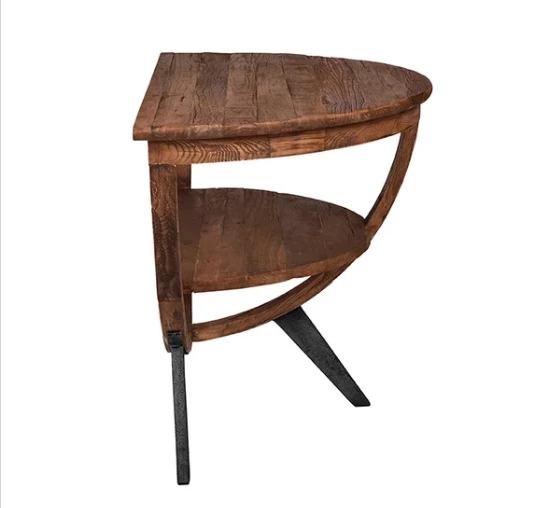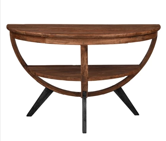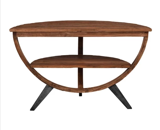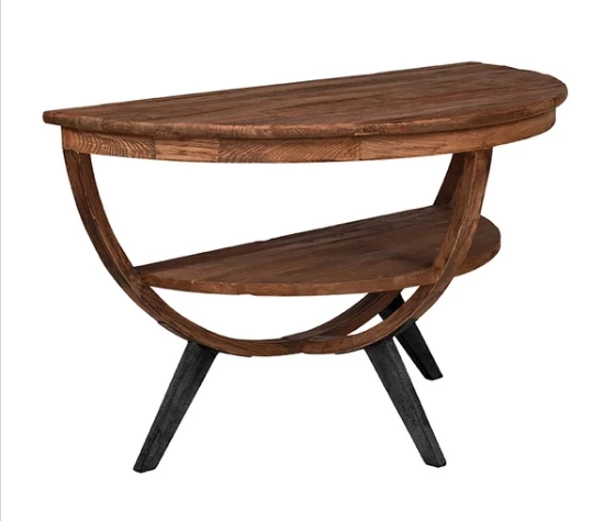 Art Decor inspired console table made from recycled Elm and aged metal feet.