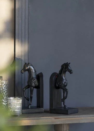 These grand black horses are crafted so well they look alive. The quality material and rich color gives these horses a realistic appearance. Great choice for a wooden laid home.