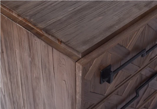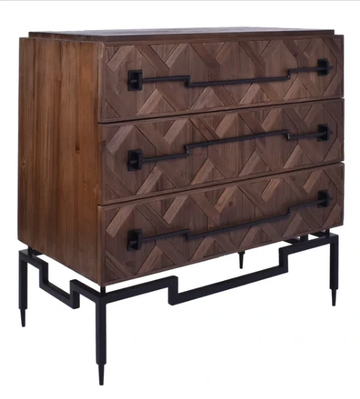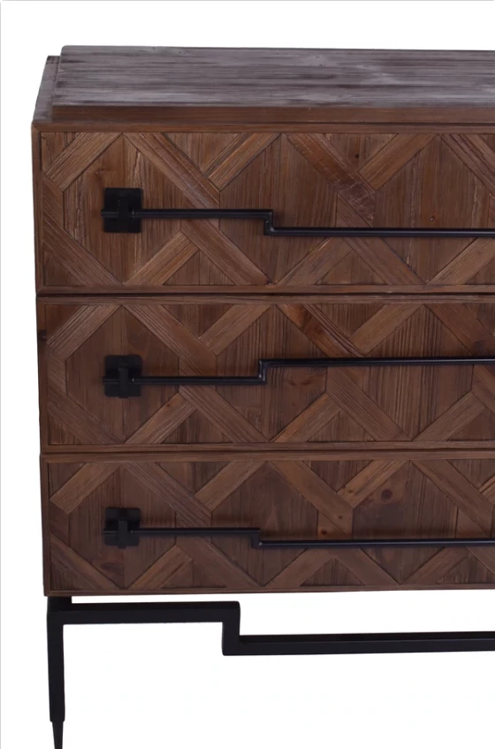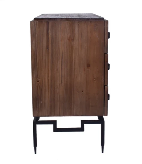 This beautiful statement piece could belong in a bedroom or living room. Made from recycled Fir and accented with creative iron design.