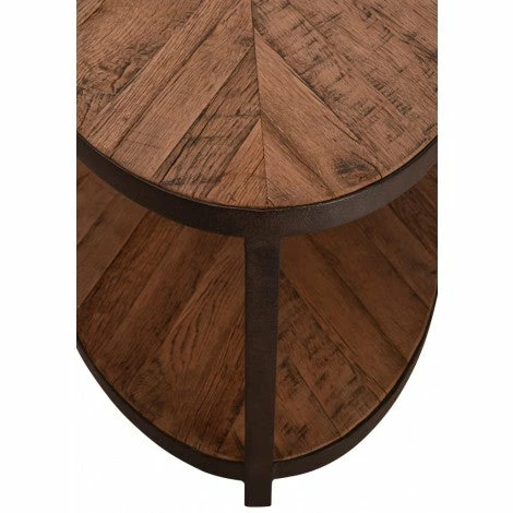 The Oval Coffee Table is made of reclaimed oak with textured dark iron frame with a convenient lower shelf. Also available in circular shape (see website).