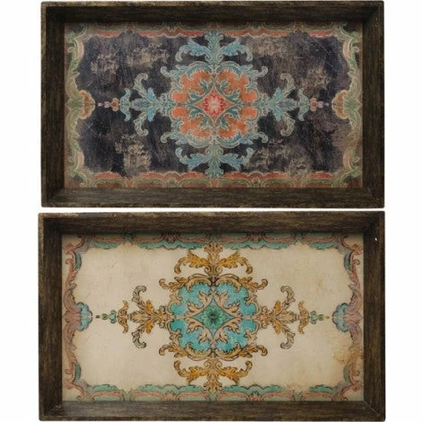 Enjoy the elegant design of the set of two wooden trays in any room of your home, from the kitchen to the home office.This set of two handsome rectangle wood trays serve nicely on a desk, cocktail table or nightstand and and is fine display piece for candy, soap, potpourri – the possibilities are endless