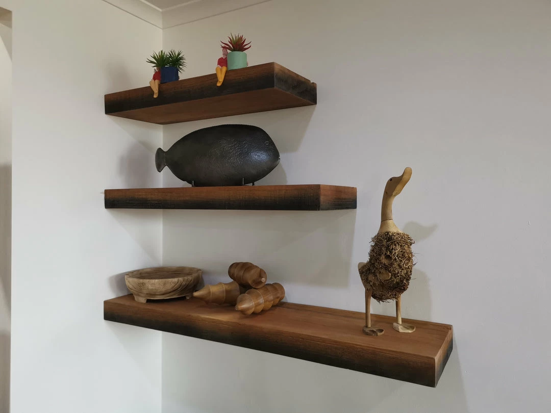 Mango wood shelf with a distressed baltic finish. Available in 3 sizes.