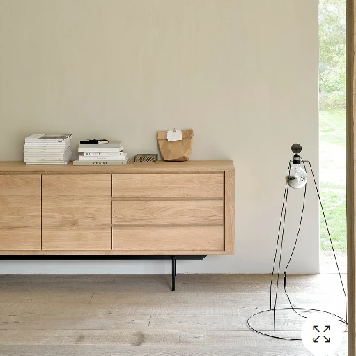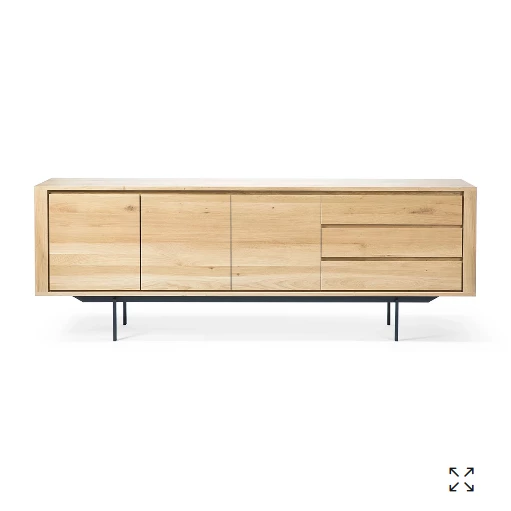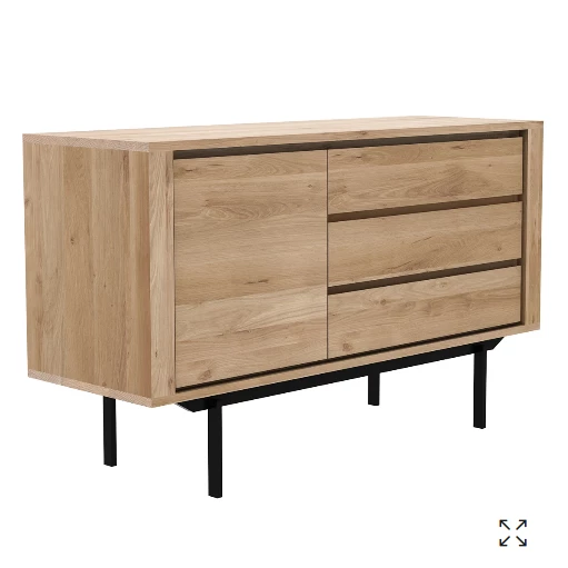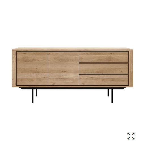 The Shadow collection is straightforward and robust with decisive lines. This more recent design with black metal legs, giving the design room to breathe, elevates this sideboard to new heights.
