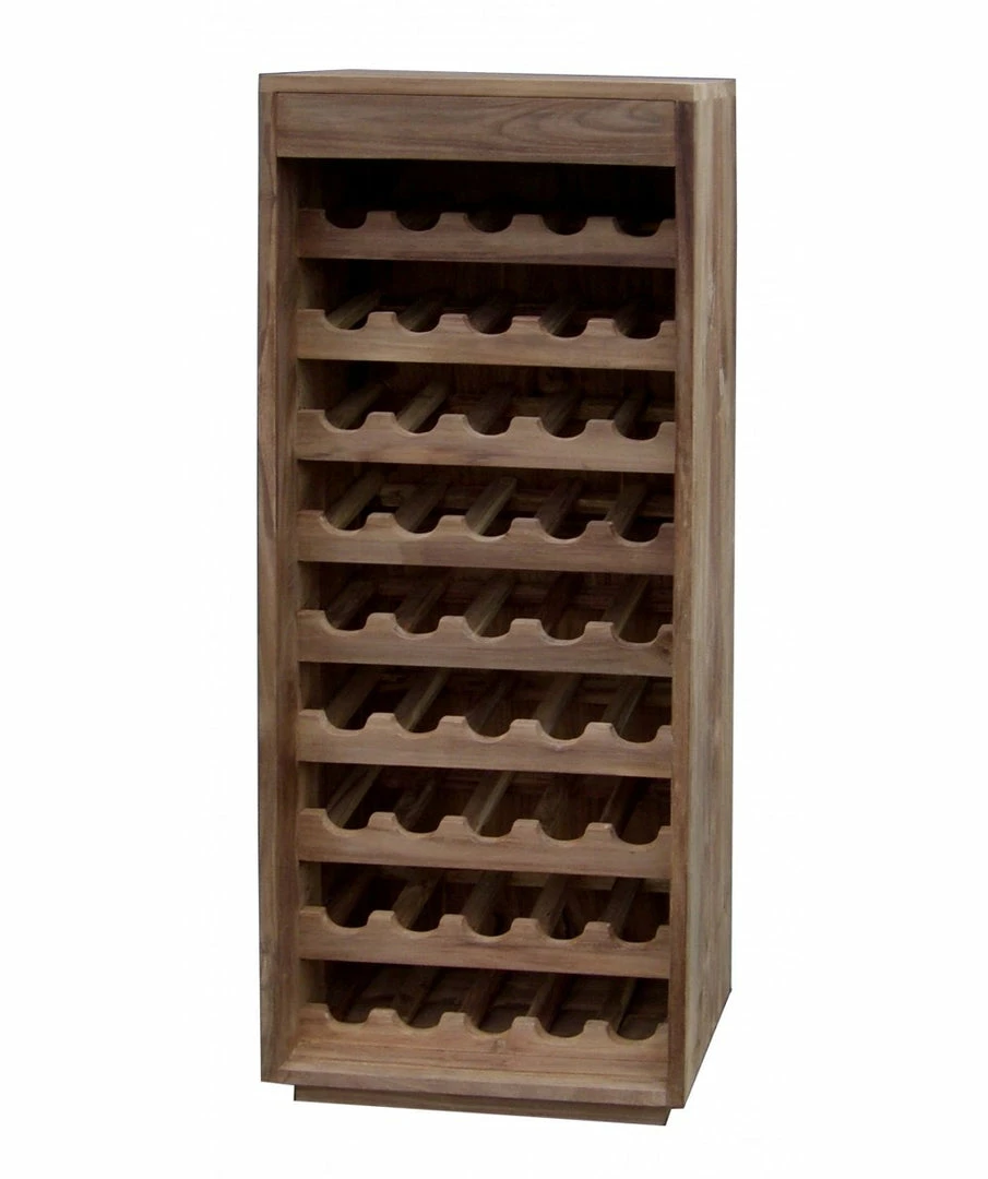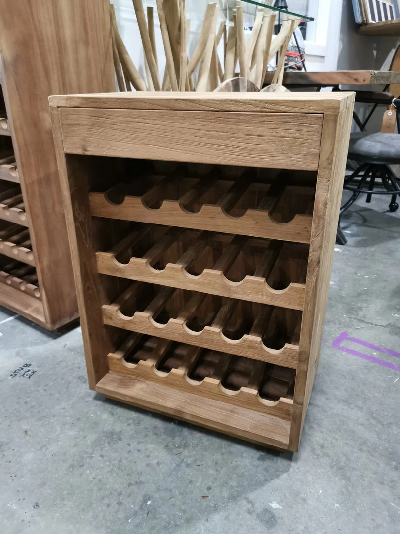 The Teak wine rack is made from untreated sustainably sourced timber. A simple design, giving the wine bottles the forefront of the overall appearance. A solid timeless timber piece. Includes a handy drawer for storage. Stores 45 bottles. Now available in a smaller 20 bottle size with drawer.