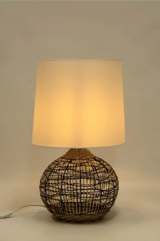 Made from metal, pvc and rattan. Simple, yet elegant design. Looks good on or off.