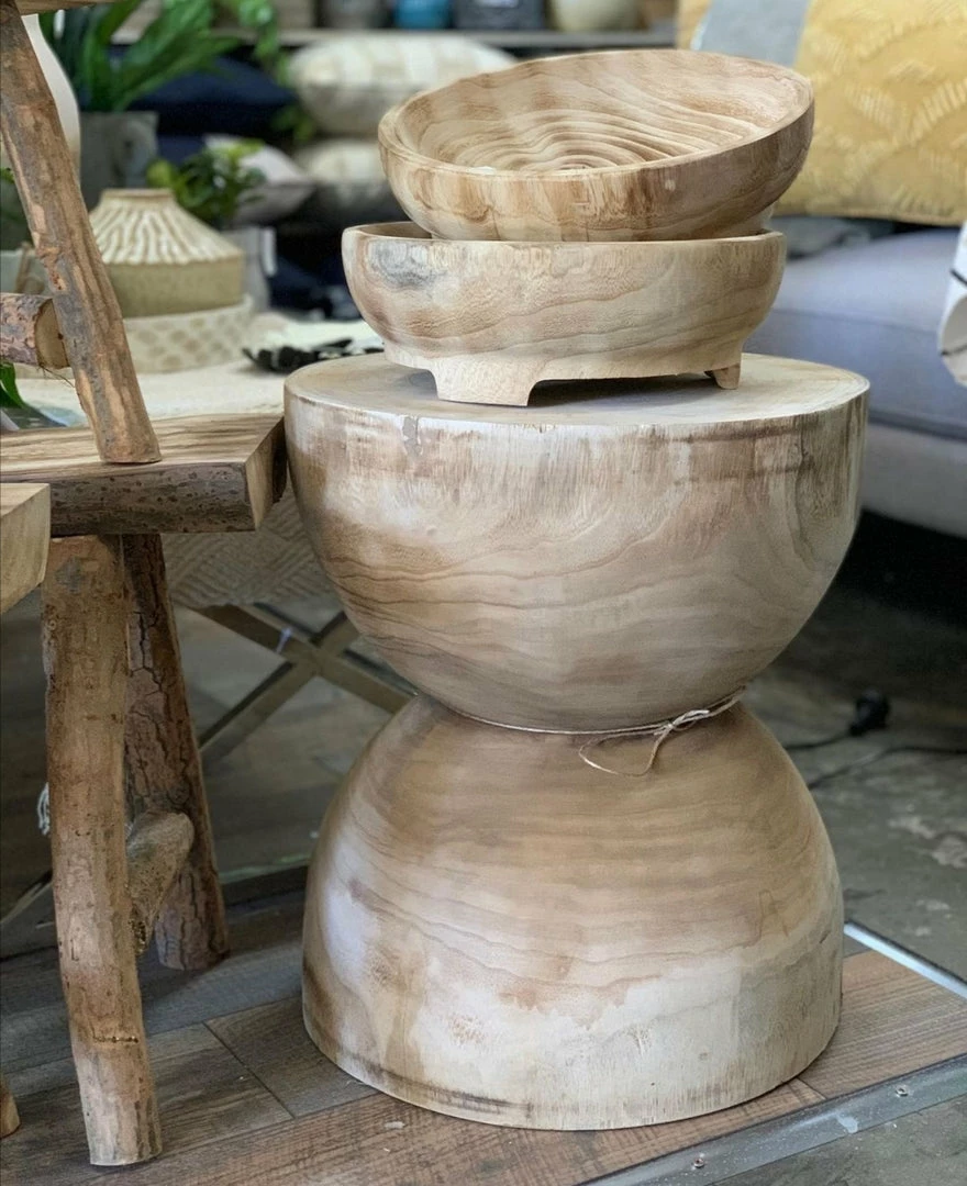 With its simple hourglass design, this stool can be used as a stool or side table.