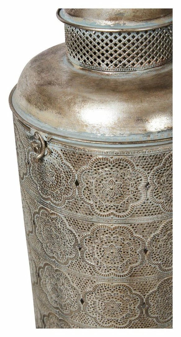 Shine a light into dark corners of your home, with this Moroccan styles filigree lantern. Made with great detail, Moroccan flower patterning has been etched on the sides and the piece has been finished off with an antique white look. Also available in Antique Bronze (Small).