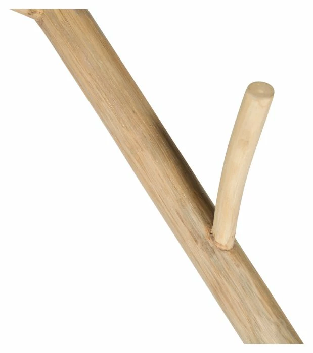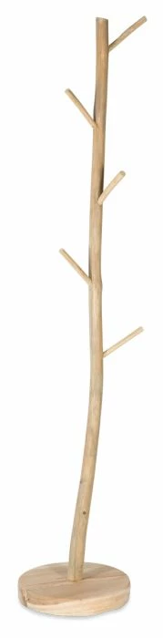 Stunning wood furniture in your home brings a freshness and striking style. This teak branch coat rack, certainly is a statement piece and will add detail to a space in your home. Beautiful teak wood has been polished and shaped to make a circular base and a single slim branch winds up making the body. Slim pegs are attached to the body, giving a handy place for you to hang, coats, scarves and any other clothing items.