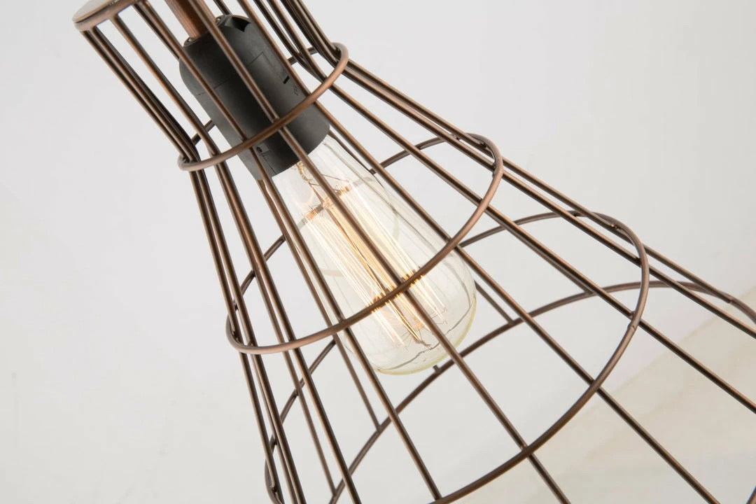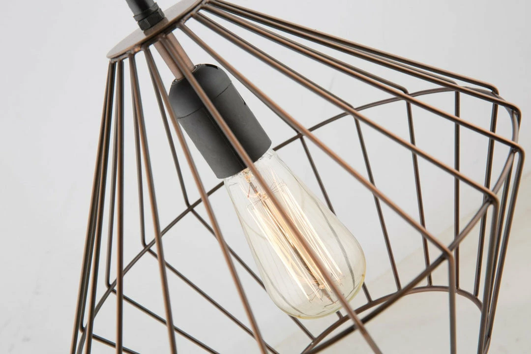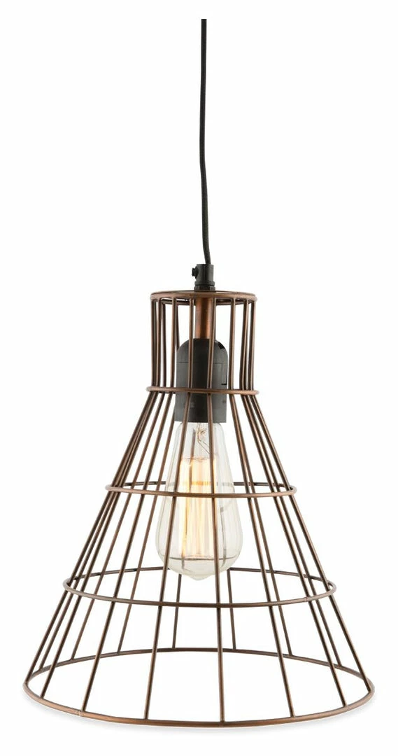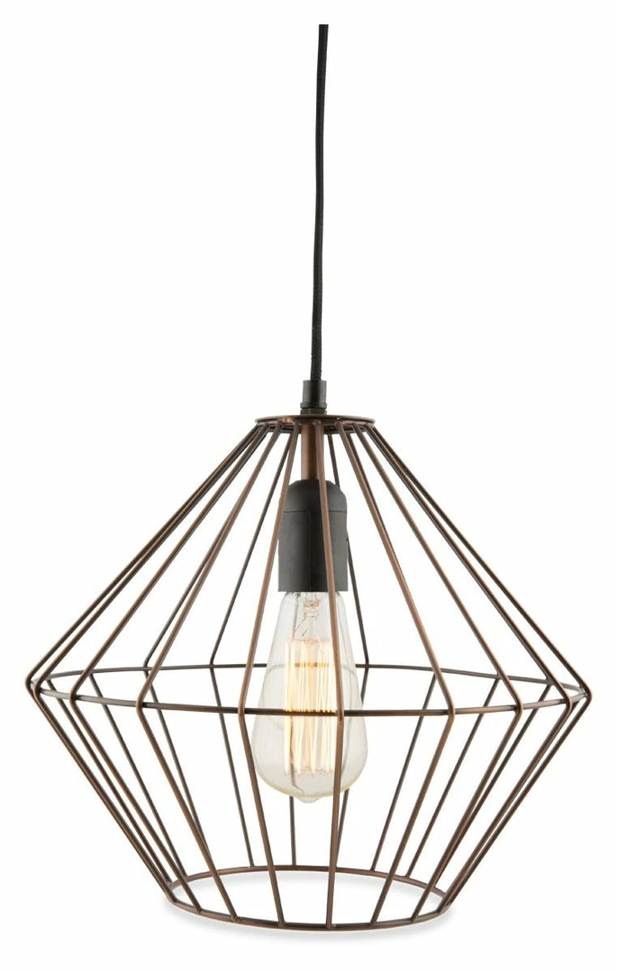 Galvanized iron wire pendant hanging lights in three different shapes. Online only.