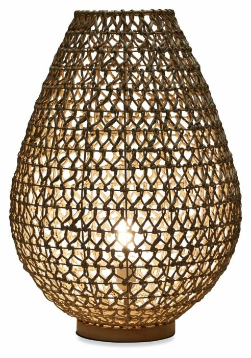 Natural beauty and style exude from this woven paper table lamp. Seated on a circular wooden base, the body is shaped in a bulbous formation made from iron and a crisscross paper lattice finish. Seated inside, the light will splay out when turned on, shooting out in all directions through the latticed body. Lamps are useful to have all around the home to create extra light when needed. Stand this one in the entrance way, the living area or even next to your arm chair to brighten up the area while you’re reading.