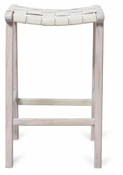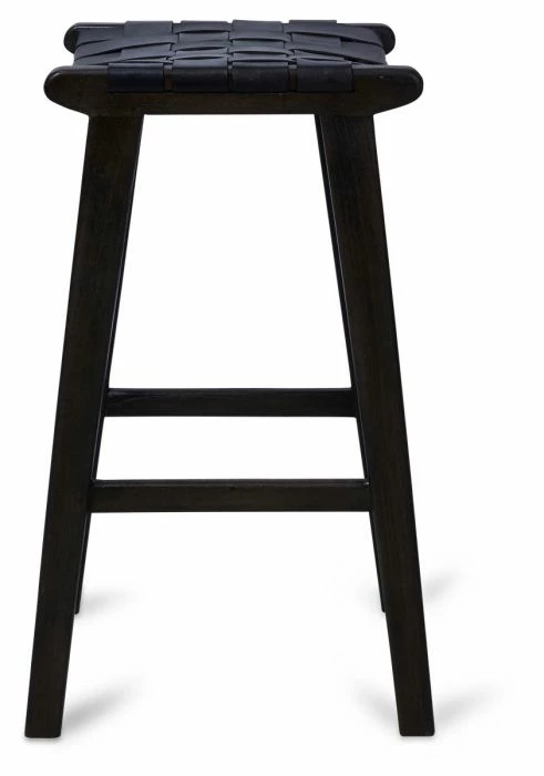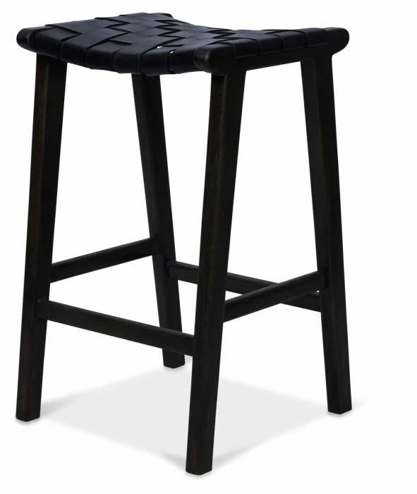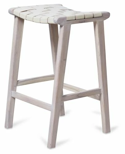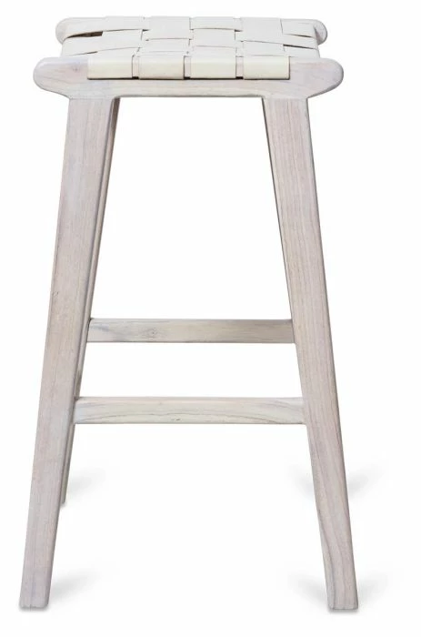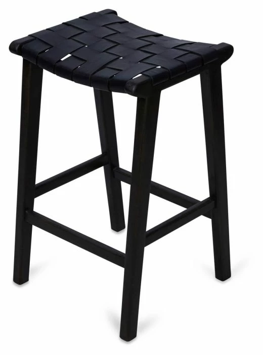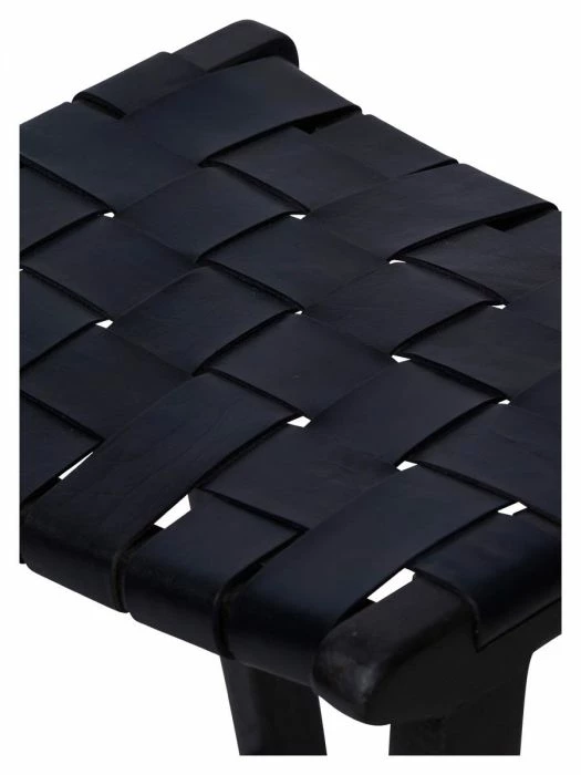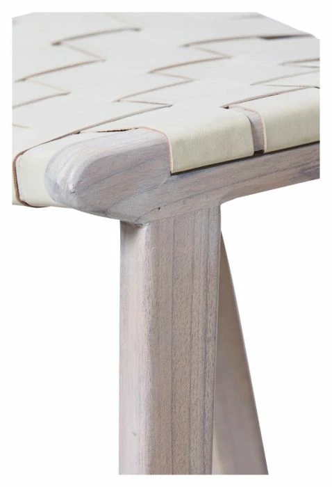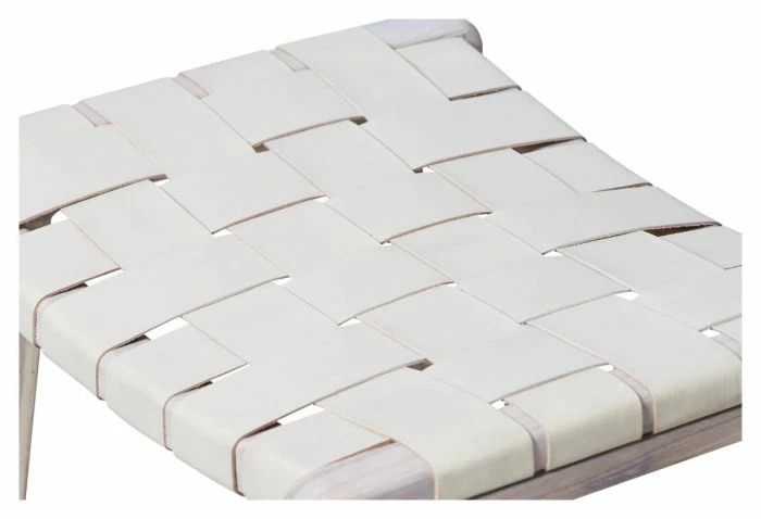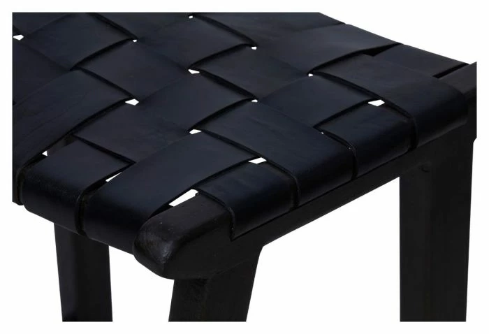 A combination of woven leather with an aged painted finish on a solid timber frame.