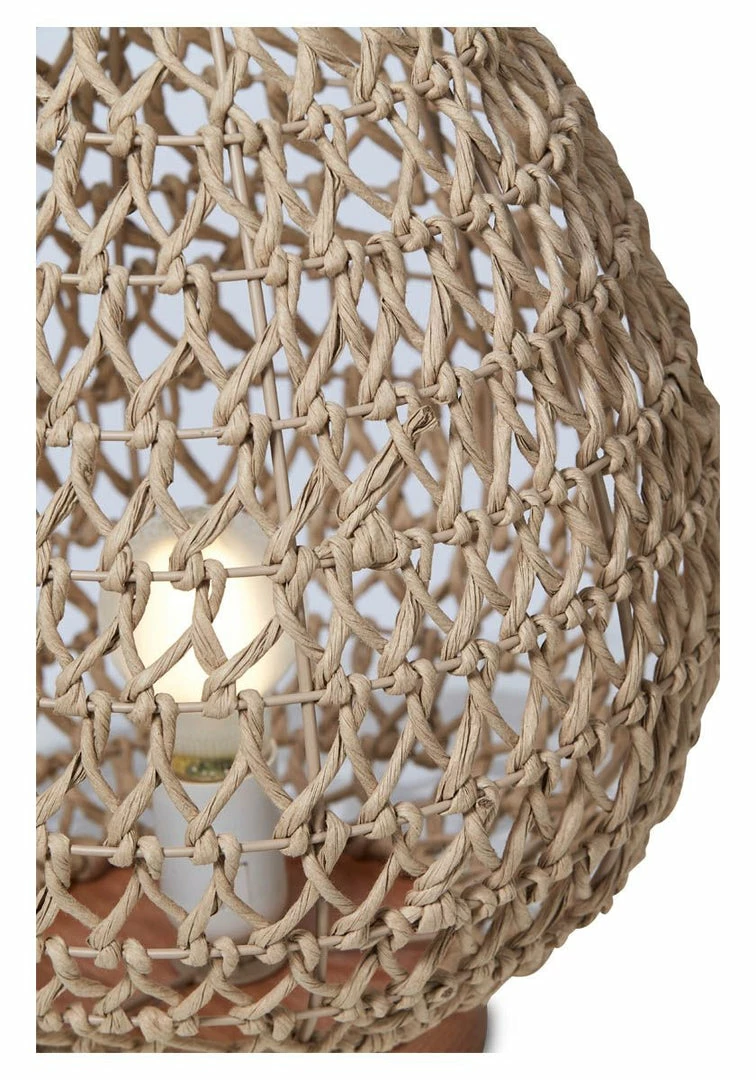 Natural beauty and style exude from this woven paper table lamp. Seated on a circular wooden base, the body is shaped in a bulbous formation made from iron and a crisscross paper lattice finish. Seated inside, the light will splay out when turned on, shooting out in all directions through the latticed body. Lamps are useful to have all around the home to create extra light when needed. Stand this one in the entrance way, the living area or even next to your arm chair to brighten up the area while you’re reading.