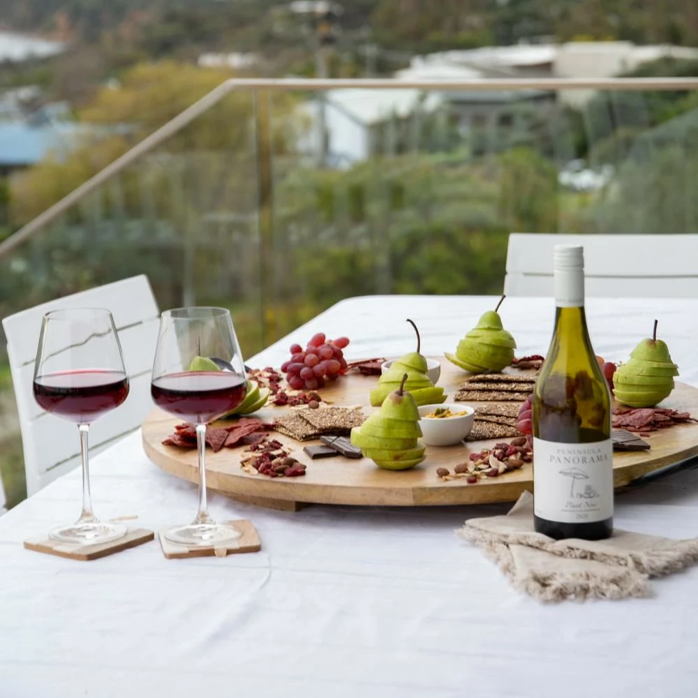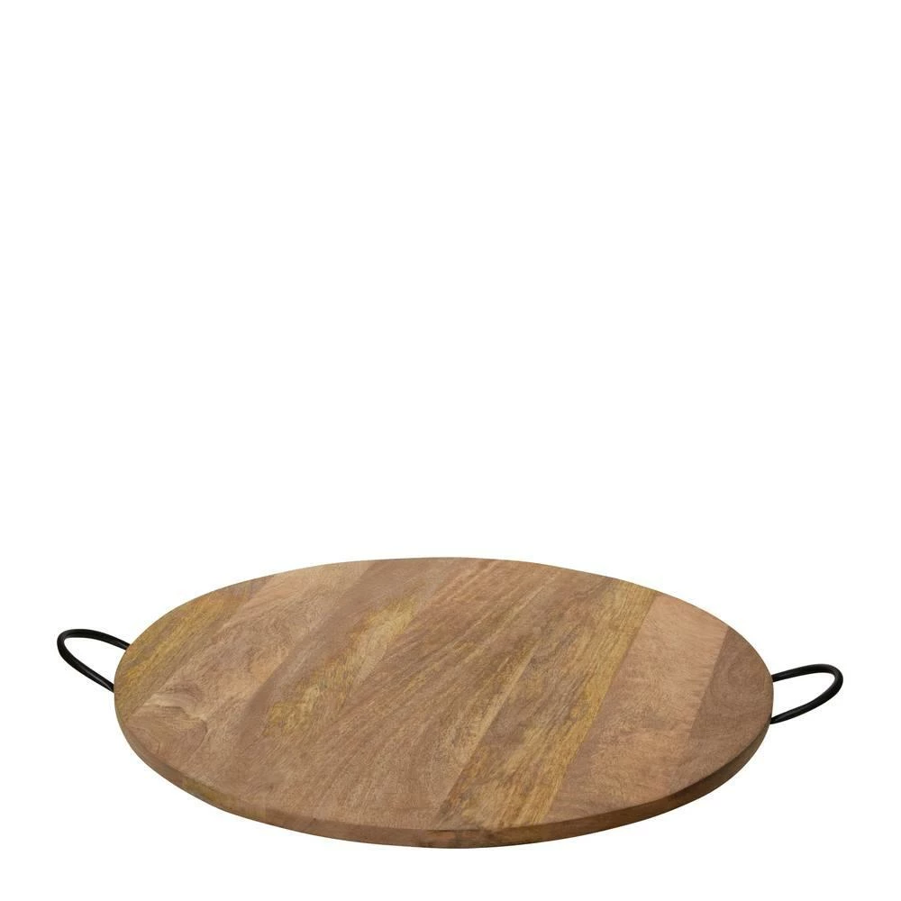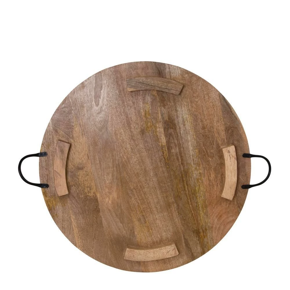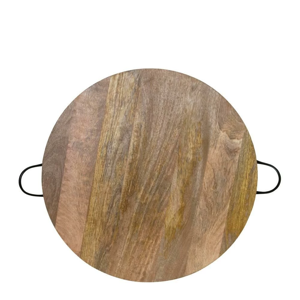 The Round Serving Board with Handles features a large circular wooden base with metal handles making it perfect for a lush grazing board to impress your guests. This is easy to style in any interior design making it a great versatile piece.