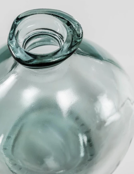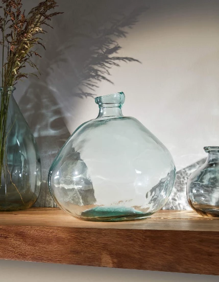 The Anner small vase is 18cm tall. Made from 100% recycled clear glass each piece has its own unique shaping and character.