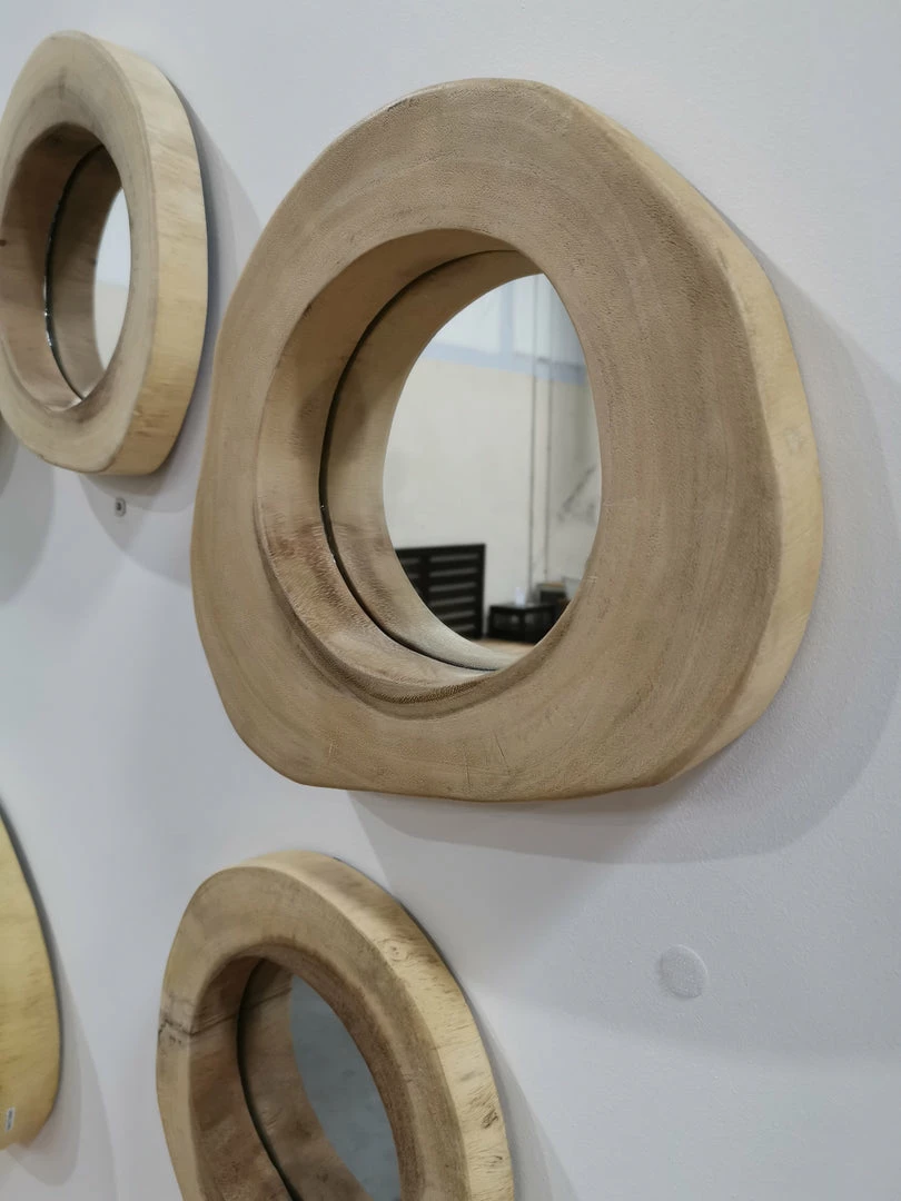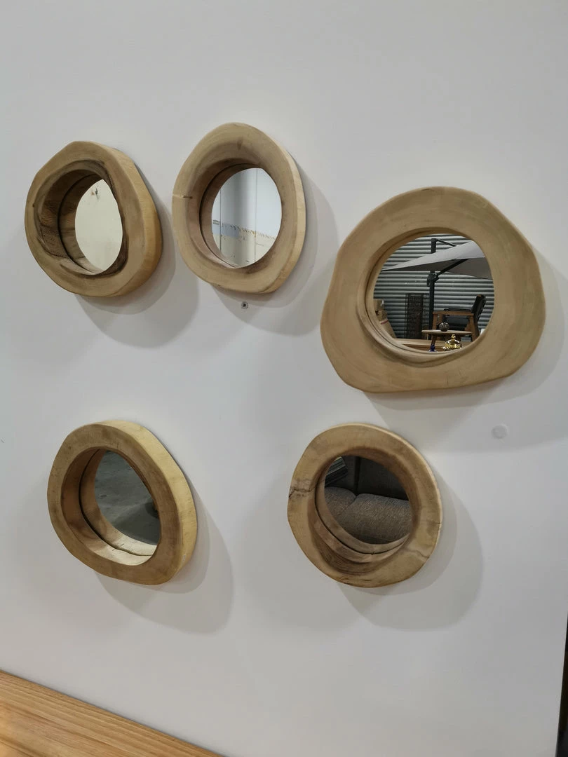 Hang one or hang them all! You are only limited by your own imagination as to how you configure these mirrors. Made from recycled Teak.