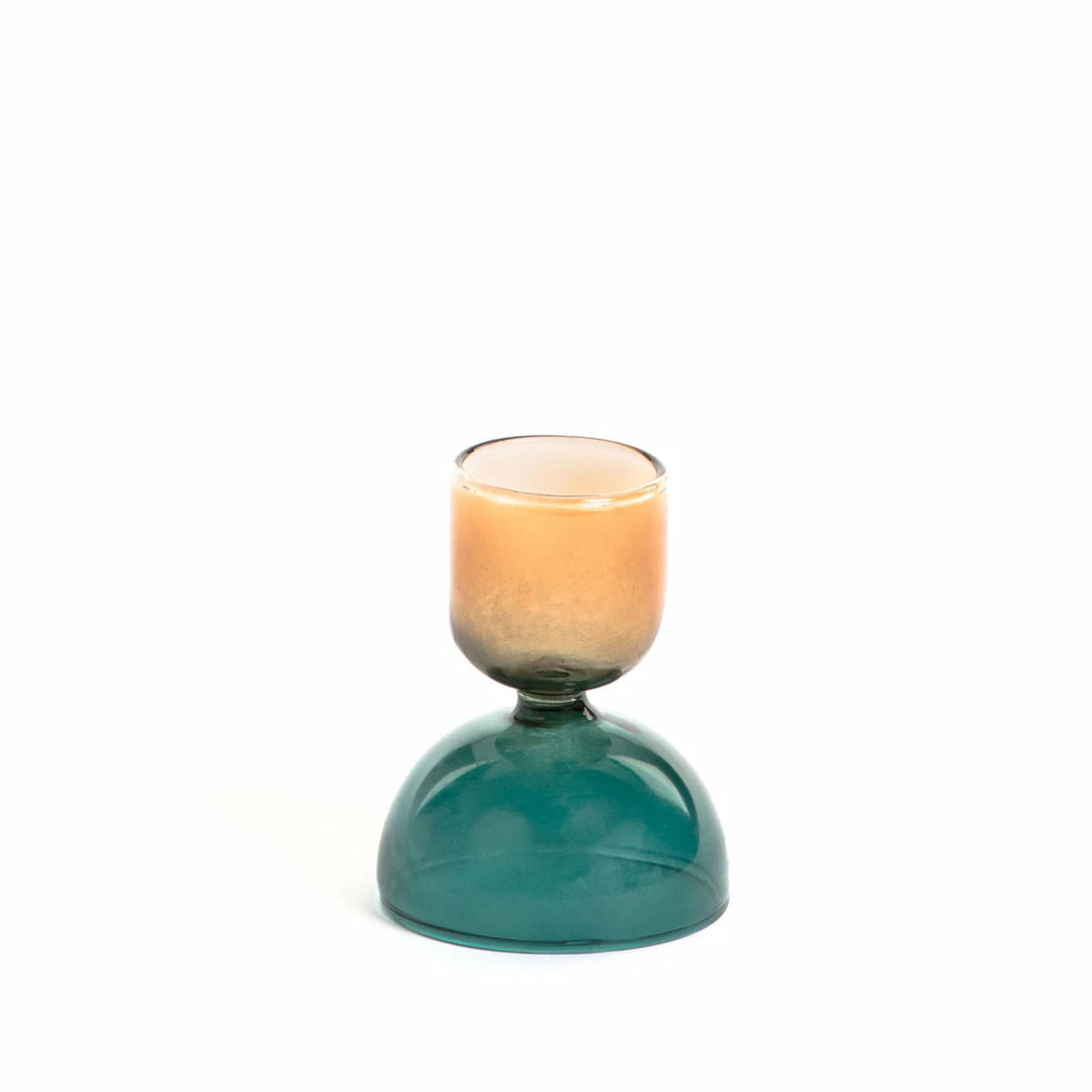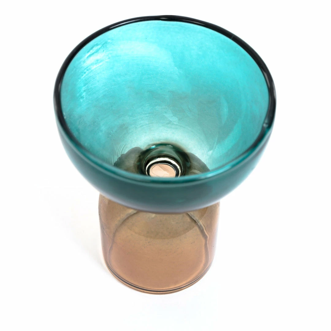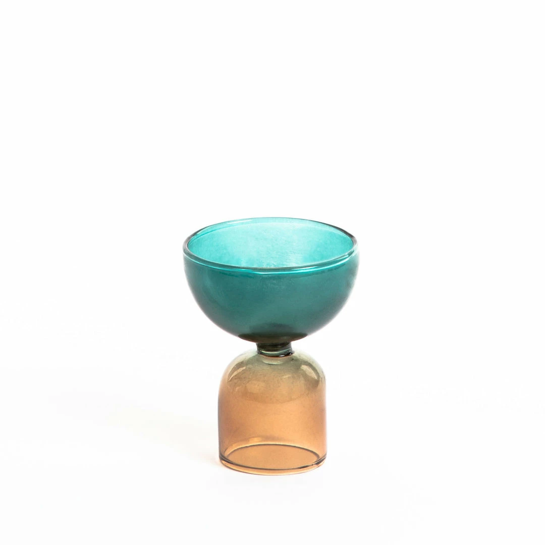 The Small Dibe vase is made of yellow and turquoise glass. It is more than just one vase it is two vases as you can flip it over.