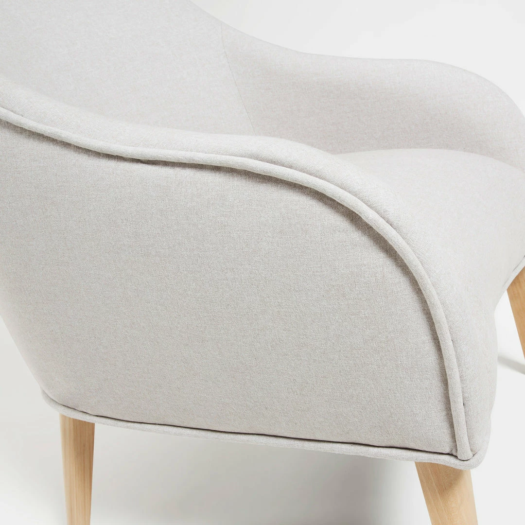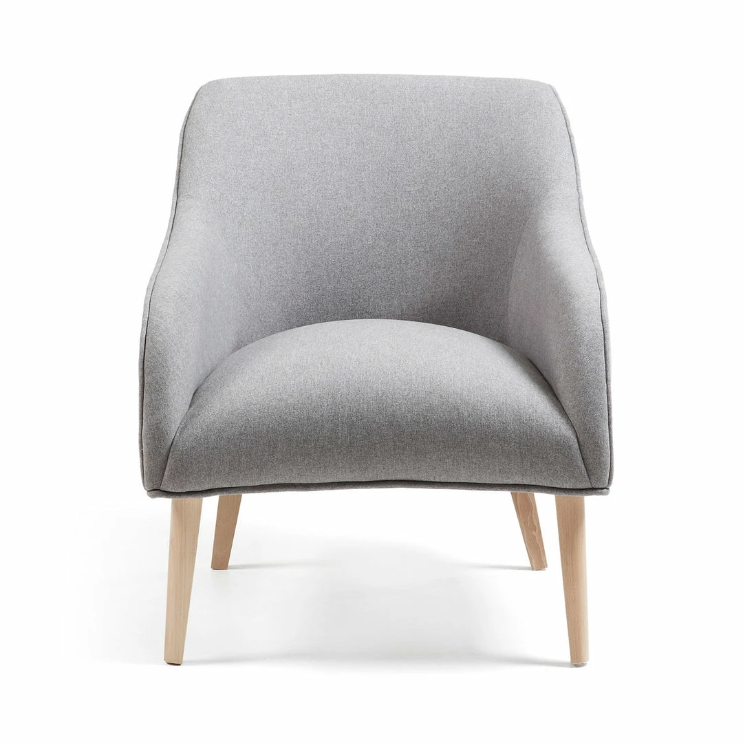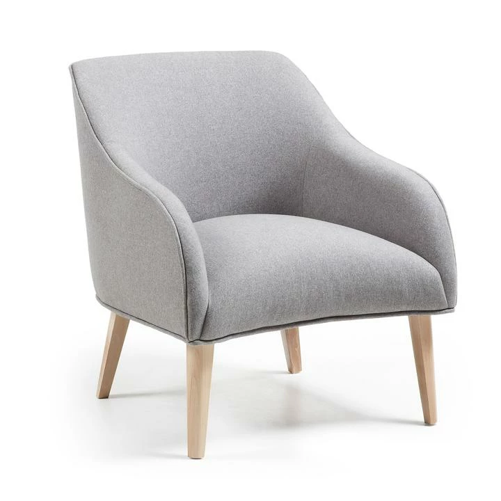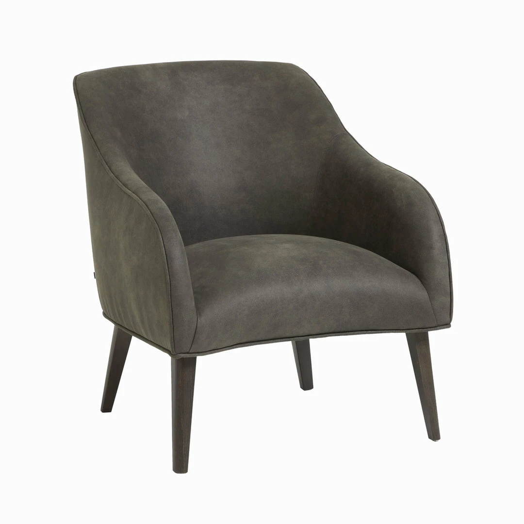 Compact and very comfortable. Upholstered in Varese fabric or Vegan Leather. Legs are solid Beech wood.