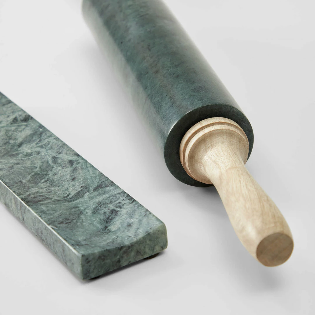 Made from marble, with timber handles, these rolling pins are durable and heavy enough to make smooth pastry a breeze. If you’re the kind of baker who makes things from scratch, let these rolling pins lend a hand. Comes with a matching marble base to protect your worktop. Available in white or dark green.