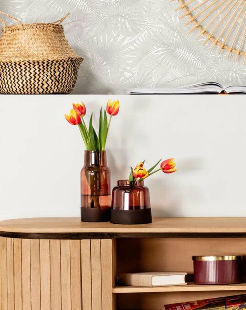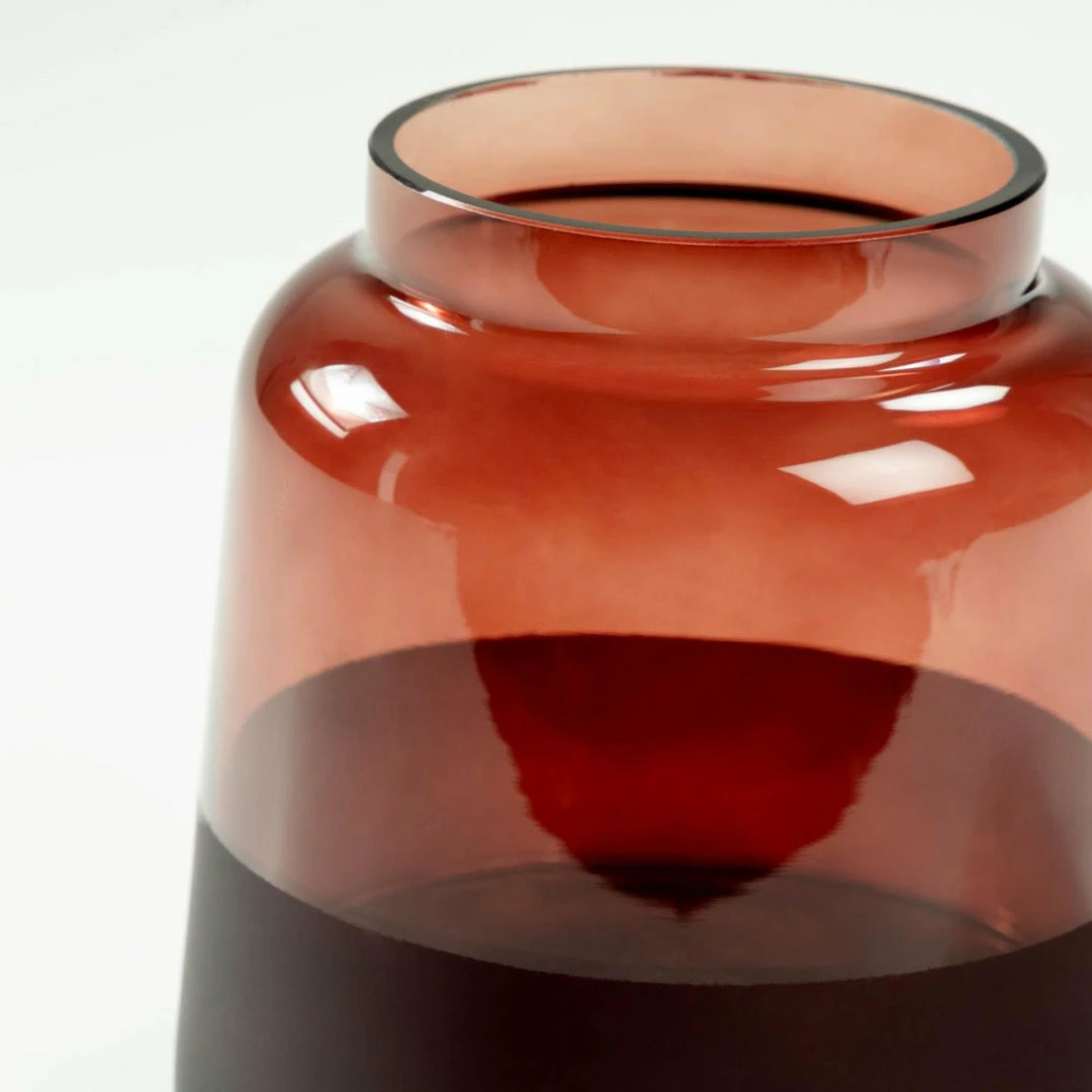 The small Narela vase is crafted from tinted maroon glass with a darker tint on the base to hide the water so that your flowers always look flawless.