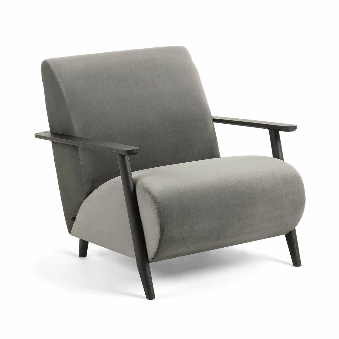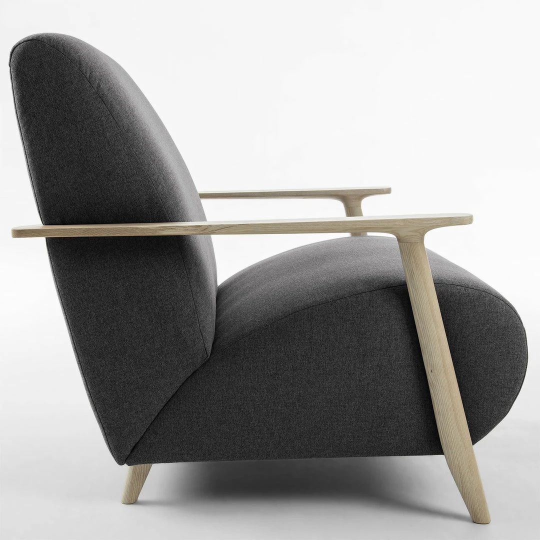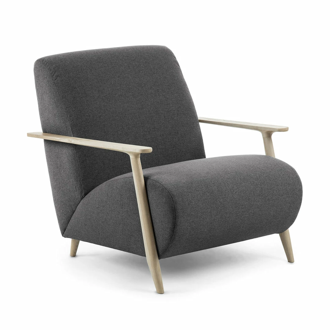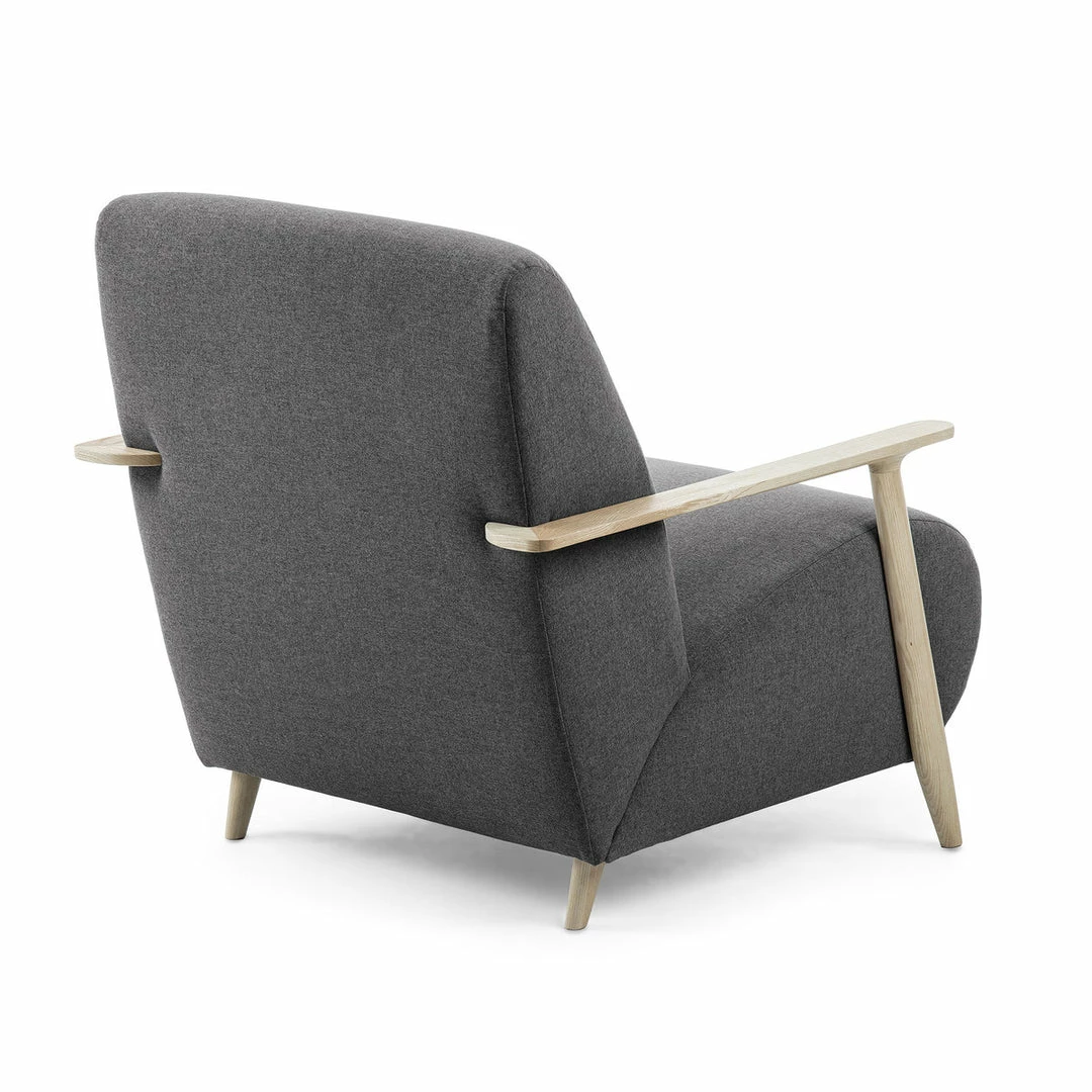 Fully upholstered armchair with anti-stain Teflon treated fabric. Arms are constructed of solid natural ash wood.