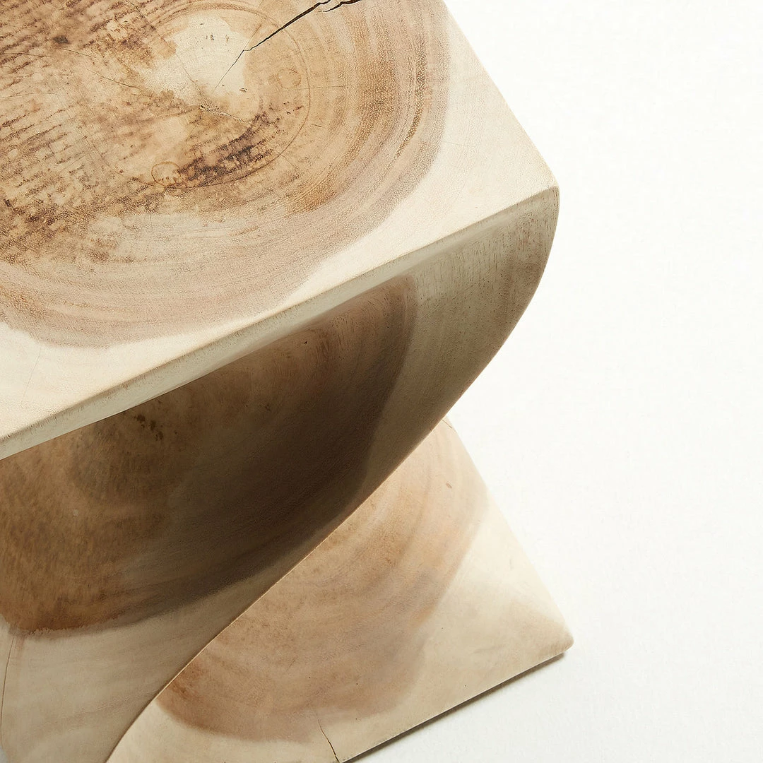 Hakon is a square side table in solid mungur wood. with raw edges. Natural timbers may exhibit variances in grain, colour and texture, sometimes visable knots, filling and butterfly joints will be evident and it can change colour with age. These variations are normal characteristics of all timber species.