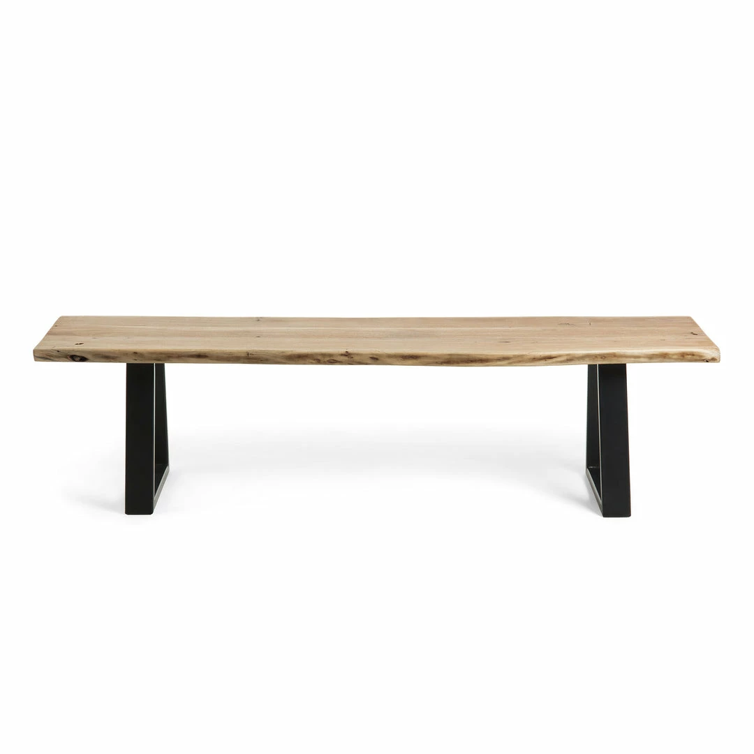 Sono bench is a natural solid wattle timber top with raw edges and black painted metal legs. Natural timbers may exhibit variances in grain, colour and texture, sometimes visable knots, filling and butterfly joints will be evident and it can change colour with age. These variations are normal characteristics of all timber species.