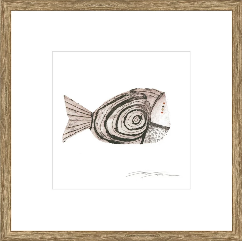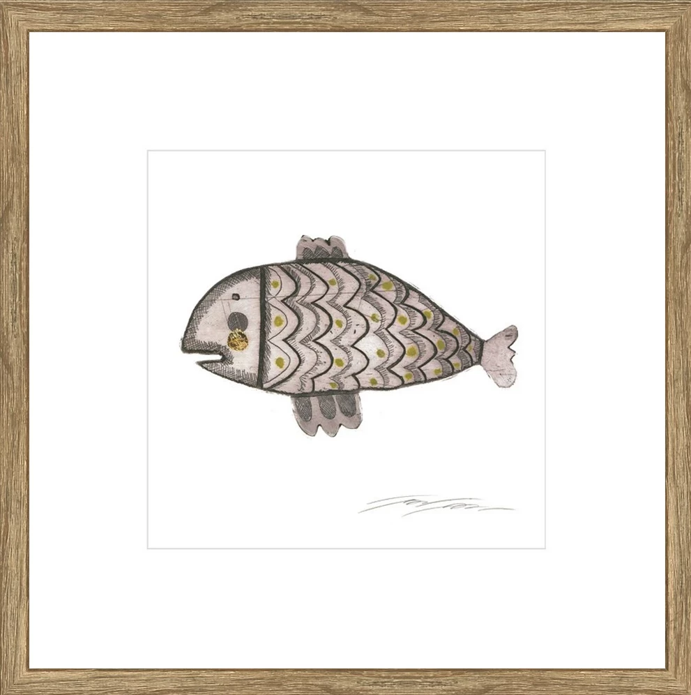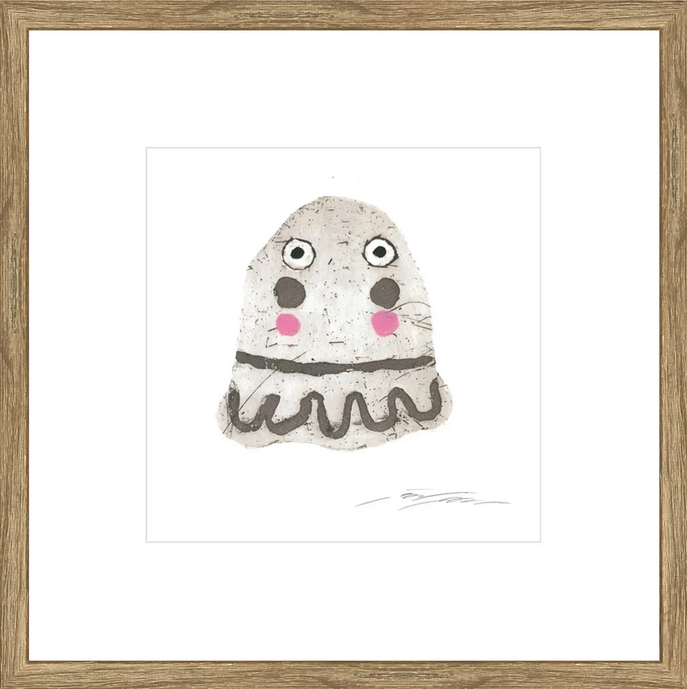 Quirky hand painted originals, reproduced as a Giclee print and framed with a white mount board and an oak frame.