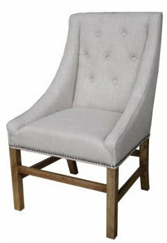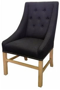 A classic, handsome dining chair that would suite the role as a carver at the end of a dining table. Fully upholstered with a pleated, buttoned back.