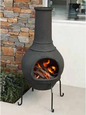 Chimineas originate from Mexico. They are an outdoor fireplace which has a large, slightly raised firebox and a short smoke chimney that is used to draw the smoke away by creating a draft. The firebox itself is ball-shaped, and the chimney is about one to one and a half times the height of the firebox.The advantage of this Chiminea outdoor fireplace is that the smoke stack makes the chiminea fireplace more efficient than fire pits and other outdoor fireplaces. The chiminea draws air in at the firebox level and drafts it up the chimney into the open air. This creates excellent air flow, feeding the fire so it burns hot and clean. That means a chiminea outdoor fireplace will produce less smoke.The ball-shaped firebox gives the chiminea two more advantages-size and safety. The firebox of the chiminea is plenty large to accommodate a lot of wood and to get a good fire going just as hot as you want it to be. Chiminea outdoor fireplaces are made from cast iron.