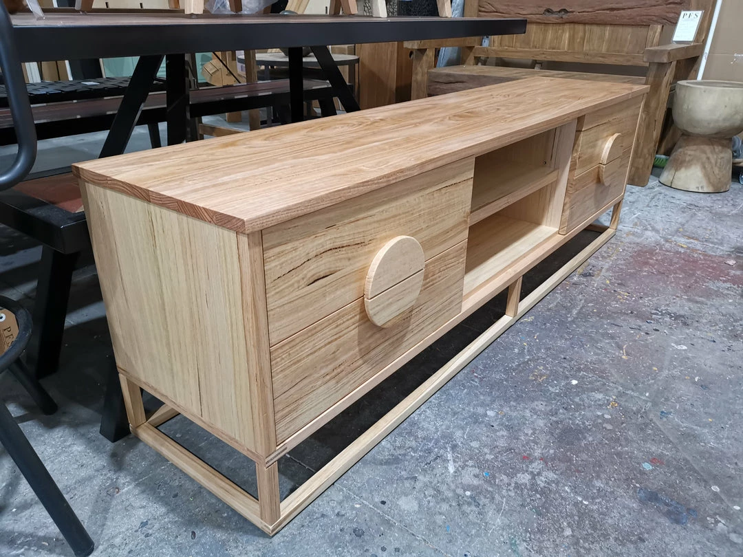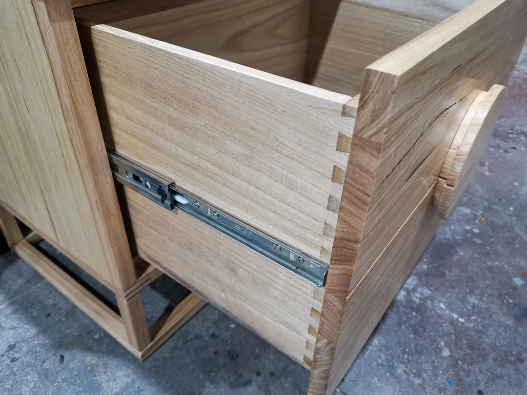 Made from Australian Oak with two deep felt-lined drawers, full extension runners, dovetailed joins, adjustable centre shelf and a timeless design that would suit a modern or classic home. Available in two sizes