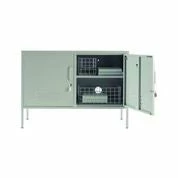 Inside: One adjustable shelf (two parts), two handy hooks, cable hole, safety wall screw holes.