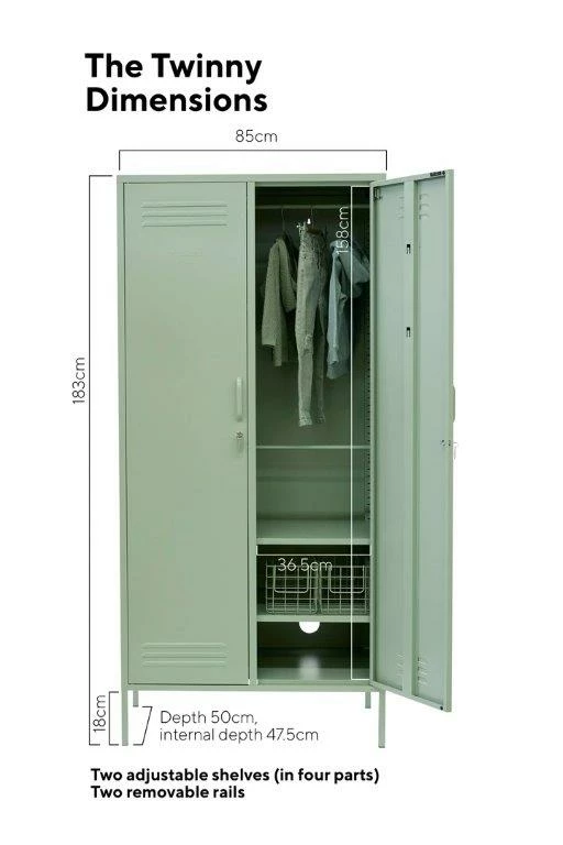 The Twinny is the Skinny’s big sister – more than just a wardrobe, it’s all of your colourful storage dreams in one! The same width as The Midi + the same height as The Skinny, but a little bit deeper for extra hanger space!