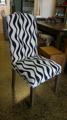 Fully upholstered dining chair. Choose your fabric and leg stain. I offer fabrics from Warwick, Wortley and Zepel. This chair requires 1.5 metres of fabric. The price of the fabric needs to be added to $325.
