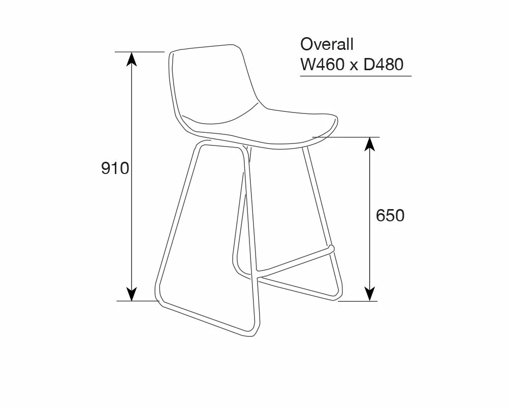 Upholstered chair with stitch detail and black powder-coated metal legs. Available in 2 different colours with four leg base (see website). Matching dining chairs available.