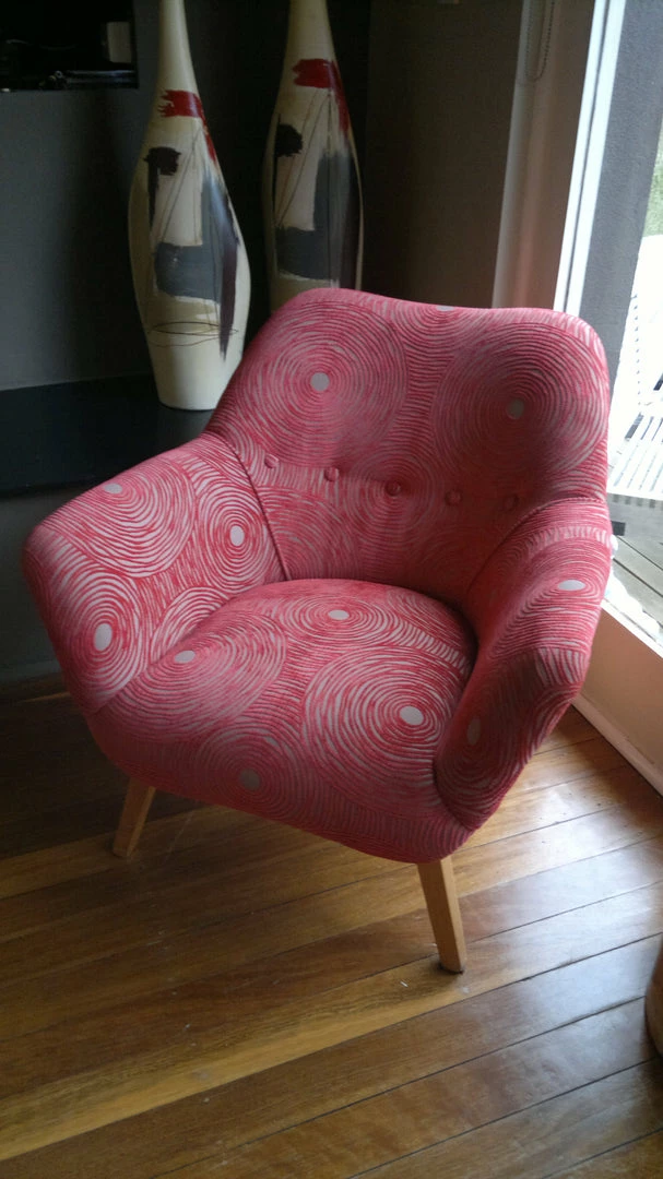 This chair requires 5 metres of fabric of your choice. This will need to be added to $1195. Fabrics start from $40 per metre. The price listed includes the staining of the legs to your choice as well.