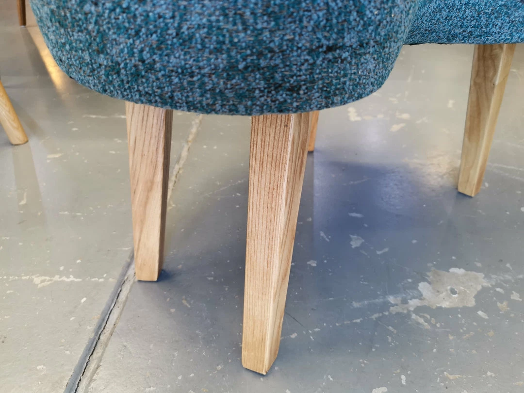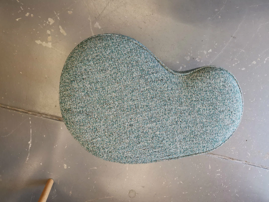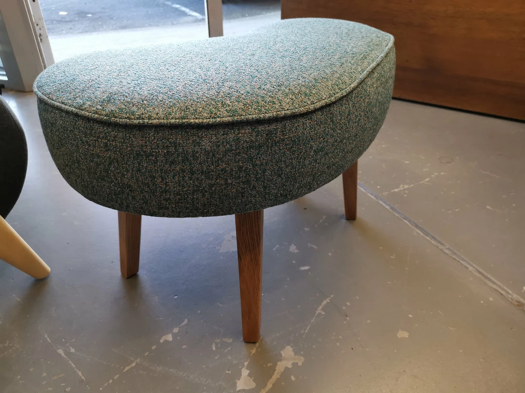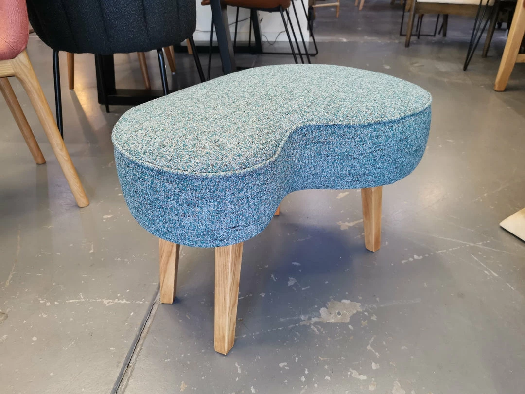 Classic retro designed ottoman. Choose a fabric and leg stain. Price listed does not include fabric of which you need 1 metre. As pictured in Zepel’s Mingle Mangle colour Cascade…$380. Mingle Mangle sells for $85 per metre. Other fabrics start from $40 per metre.