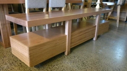 If you like the RAT 5 Dining table and the RAT 5 Sideboard, you’ll love this entertainment unit. Made from Messmate it continues the same lines and profile as the table and sideboard. It has three drawers with full extension runners, dovetail joins and generous cavity space for all of your components.