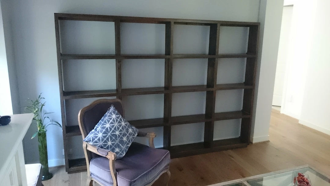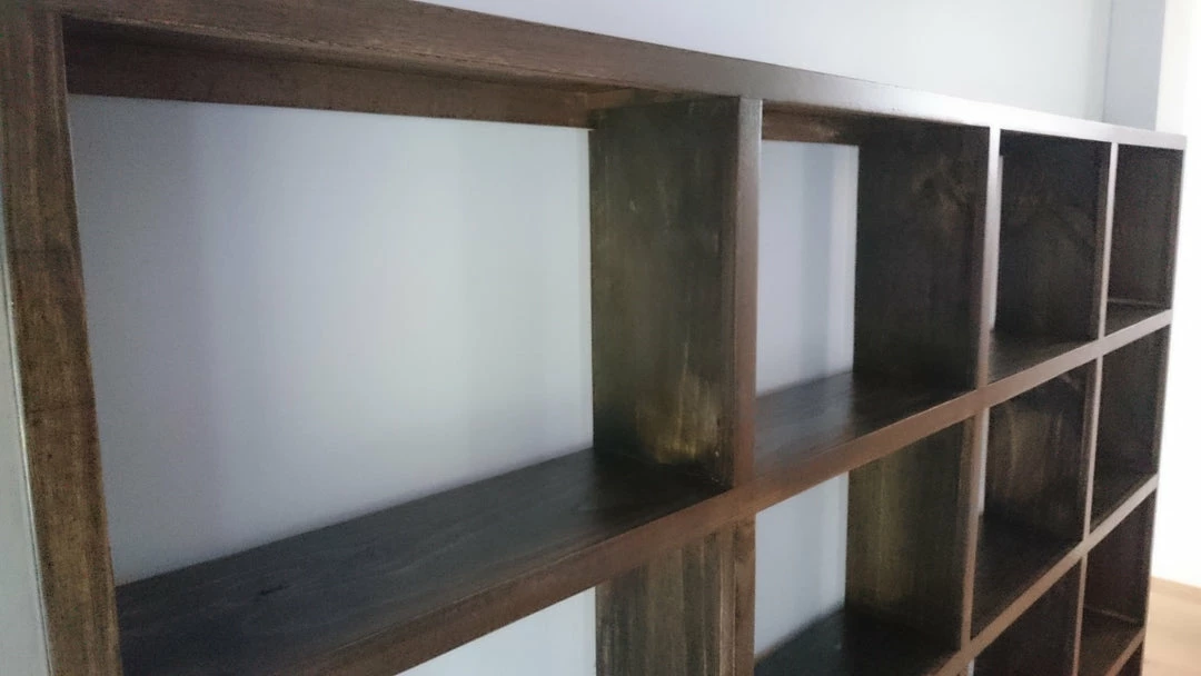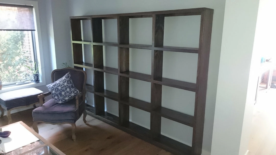 The customer had a large area to fill but didn’t want a piece made that was too heavy looking. Simple solution is not to have a back, literally giving the shelf an open look.