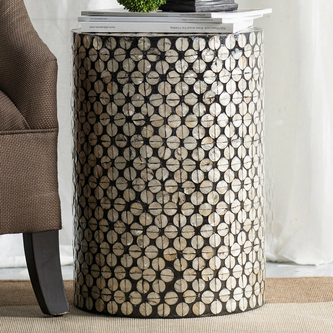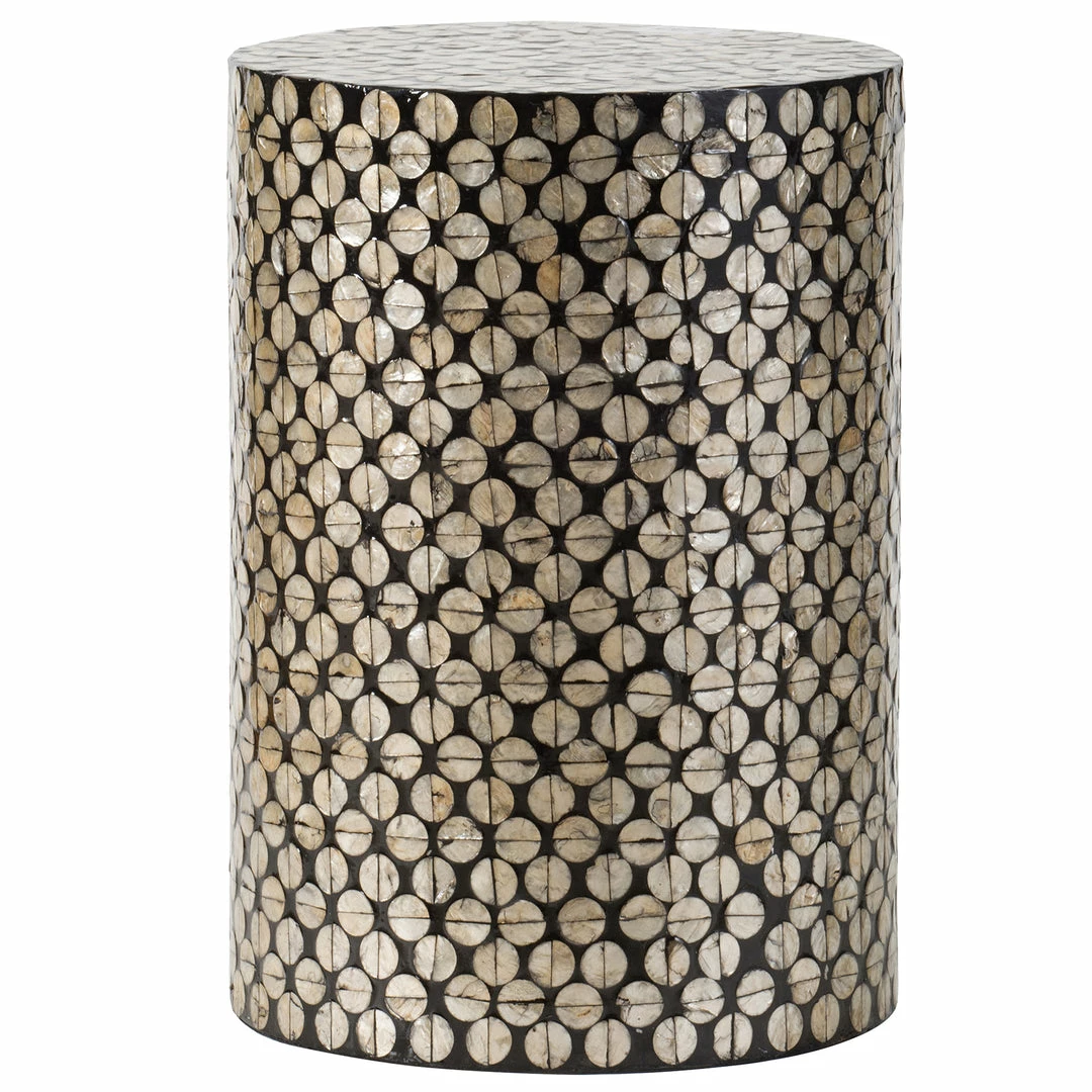 A round side table, stool or foot rest – introducing the beach inspired Copacabana side table. Adorned with discs of real sea shells that shimmer when they catch the light, this is a furniture piece that will instantly brighten and transform a space. Invest in a pair as bedside tables, use it as a stool for your desk, or as a stand-alone decor piece to rest a plant on, or even coffee table books.
