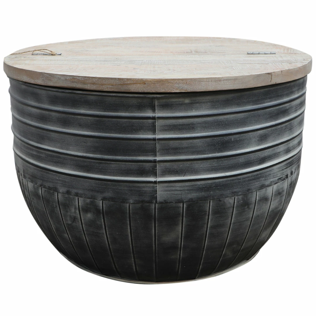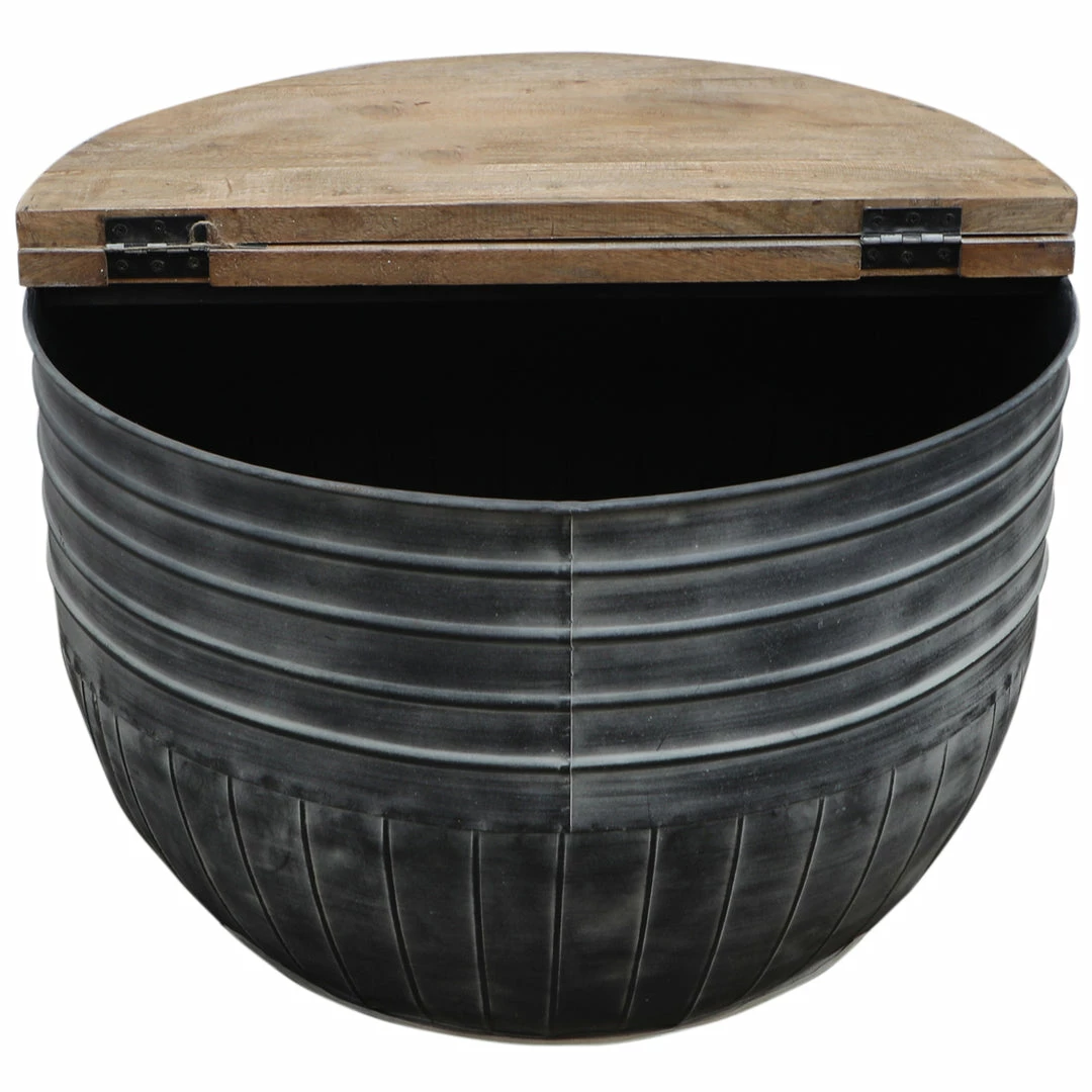 Storage Coffee Table is a beautiful addition to any style of home. Set with a washed metal base and the wonderful contrast of a mango hardwood tabletop, enjoy this rustic and sturdy furniture piece for years to come. Coffee table opens for storage.