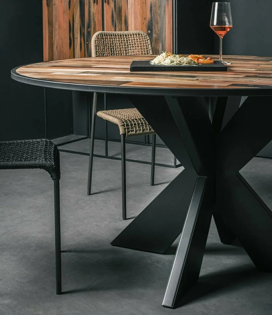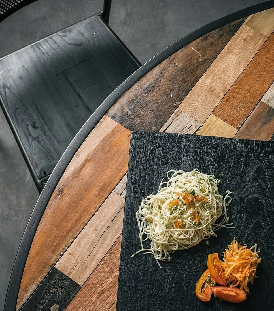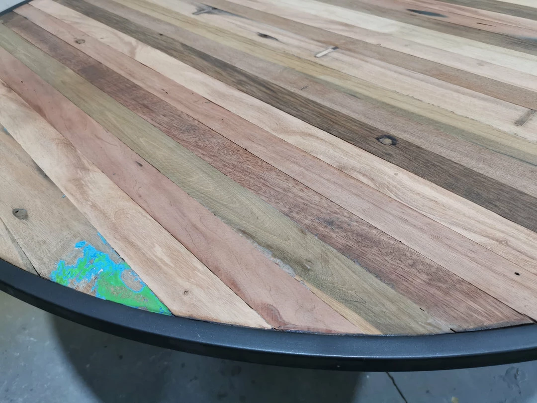 The mix with iron highlights the artistic beauty of the recycled boat wood. All of their wood is SVLK certified to meet global market demands. They use only recycled wood.