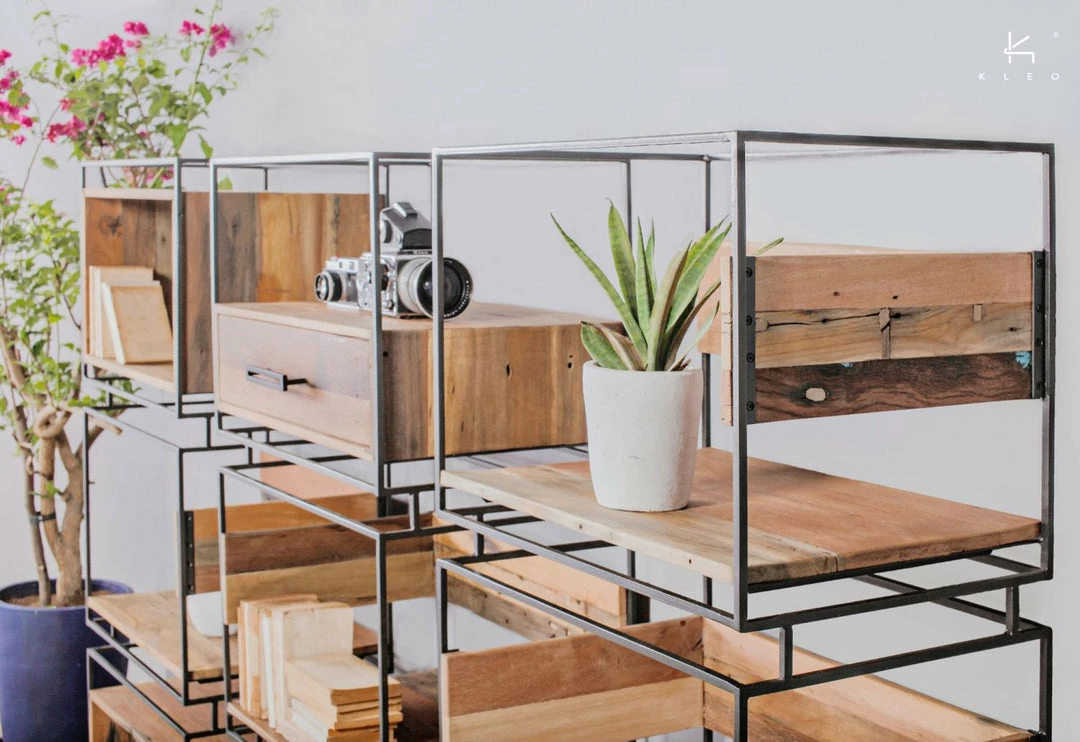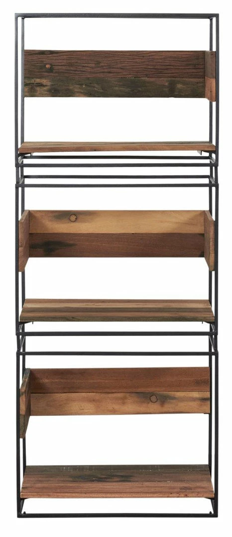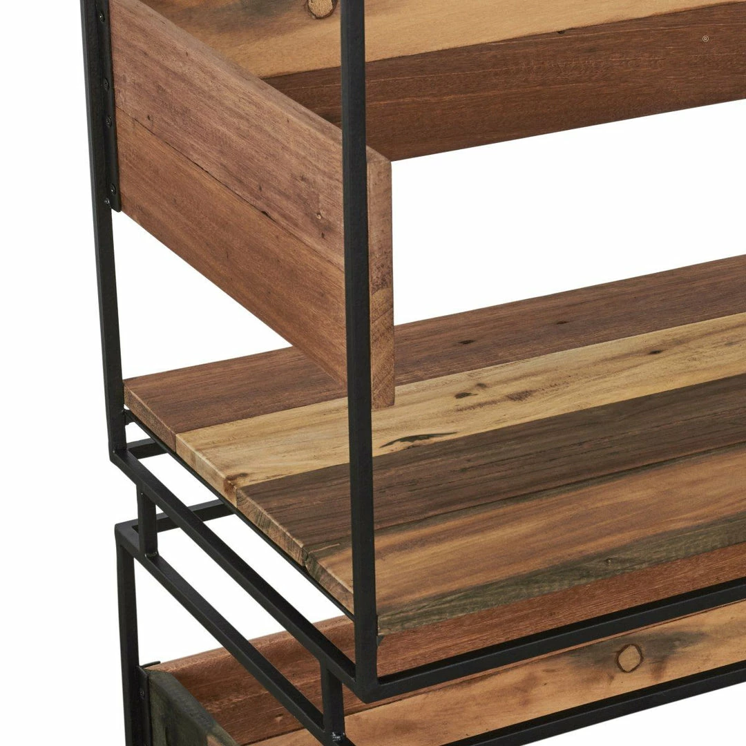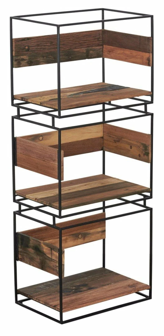 French designer Damien Mazingue has delivered the Nako range, a clever blend of recycled boatwood timber & powdercoated metal. Geometric forms provide clever storage compartments with the use of a metal frame central to the design highlighted with timber panels to create functional furniture pieces with a light fresh approach. The bookcase consists of open storage voids. The timber is mixed hardwoods sourced from old fishing vessels in North Java. Colour tones, knots, burrs and holes are evidence of it’s previous use on the high seas and are not considered as faults. Remnants of colours can also vary from piece to piece and is part of the uniqueness of the range. Each item will match in the design and size but can differ in the colour variation of timbers and tones.