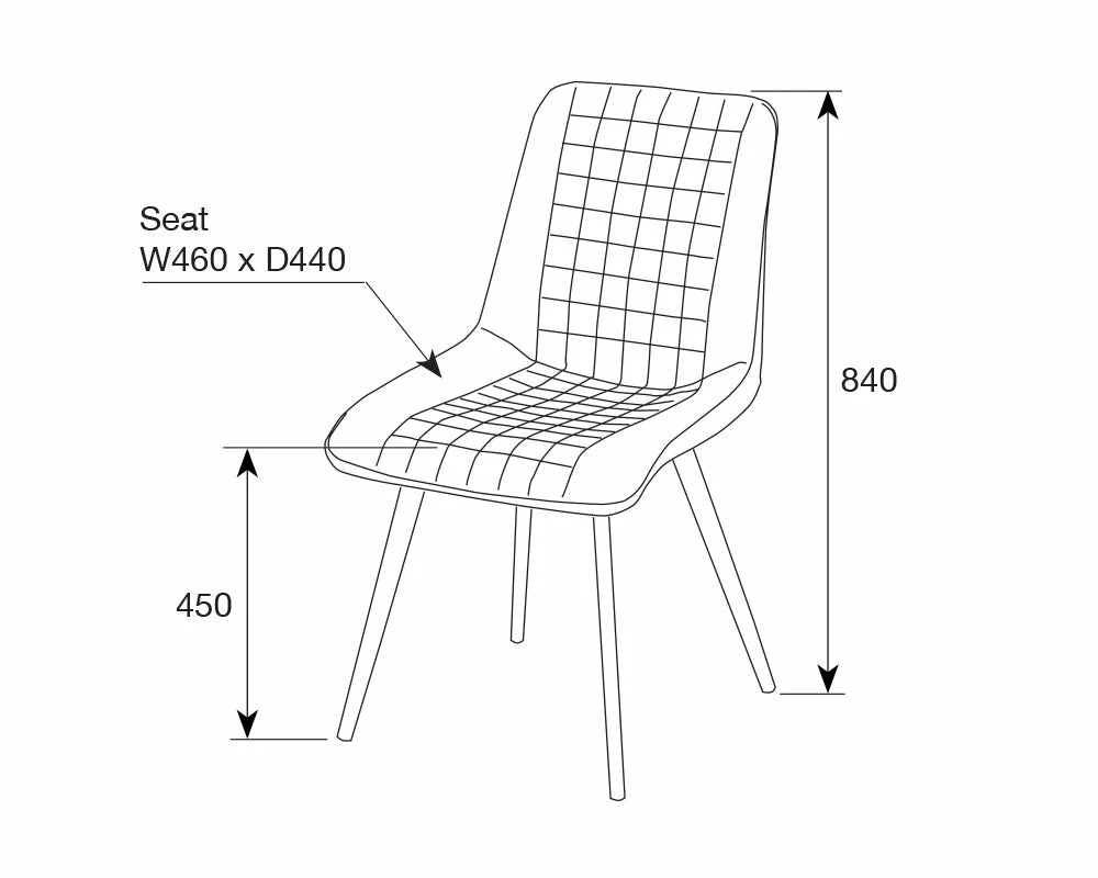 Padded seat in ‘Vegan Leather’ or velvet on black powder-coated metal legs.